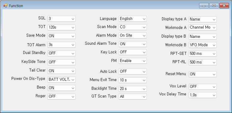 - 0.스켈치: 수신 감도를 설정합니다. 0은 상시 수신합니다.