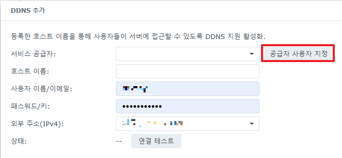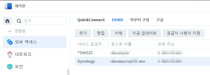 제어판➡️외부 액세스➡️DDNS로 이동 후 추가 버튼을 누릅니다.