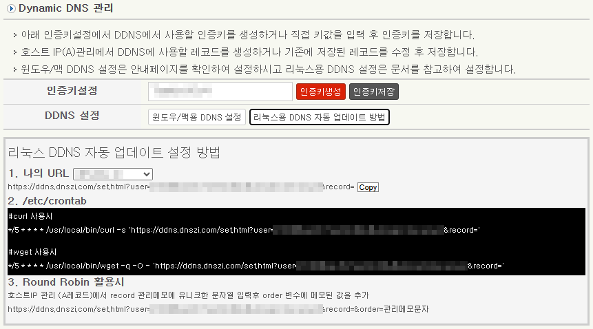 DDNS 설정의 리눅스용 DDNS 자동 업데이트 방법 버튼을 누릅니다.
