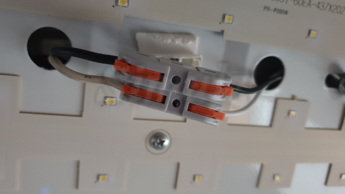 주황색 부품을 제끼고 전선을 넣고 다시 닫으면 됩니다. 전선의 심선 노출은 15mm가 적당합니다.