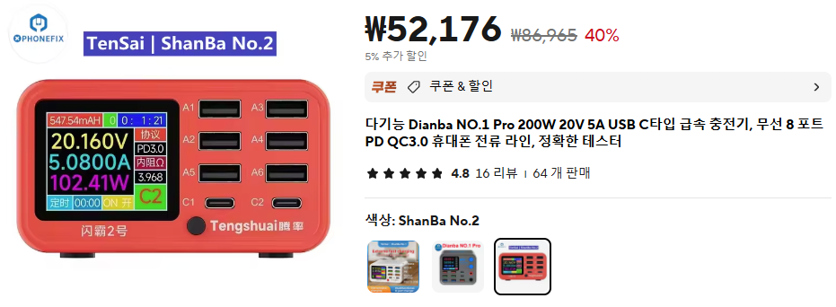 다기능 Dianba NO.1 Pro 200W 20V 5A USB C타입 급속 충전기, 무선 8 포트 PD QC3.0 휴대폰 전류 라인, 정확한 테스터