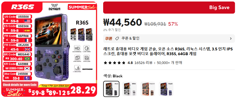 레트로 휴대용 비디오 게임 콘솔, 오픈 소스 R36S, 리눅스 시스템, 3.5 인치 IPS 스크린, 휴대용 포켓 비디오 플레이어, R35S, 64GB 게임