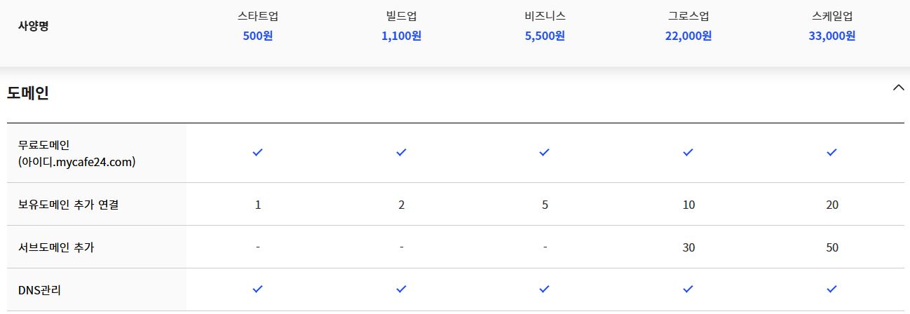 서비스를 보면 도메인 추가, 서브도메인 연결 수가 제한되어 있습니다.