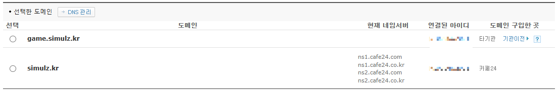 4. ID.cafe24.com, ID.mycafe24.com 과 과 같은 무료도메인은 설정이 불가 합니다.