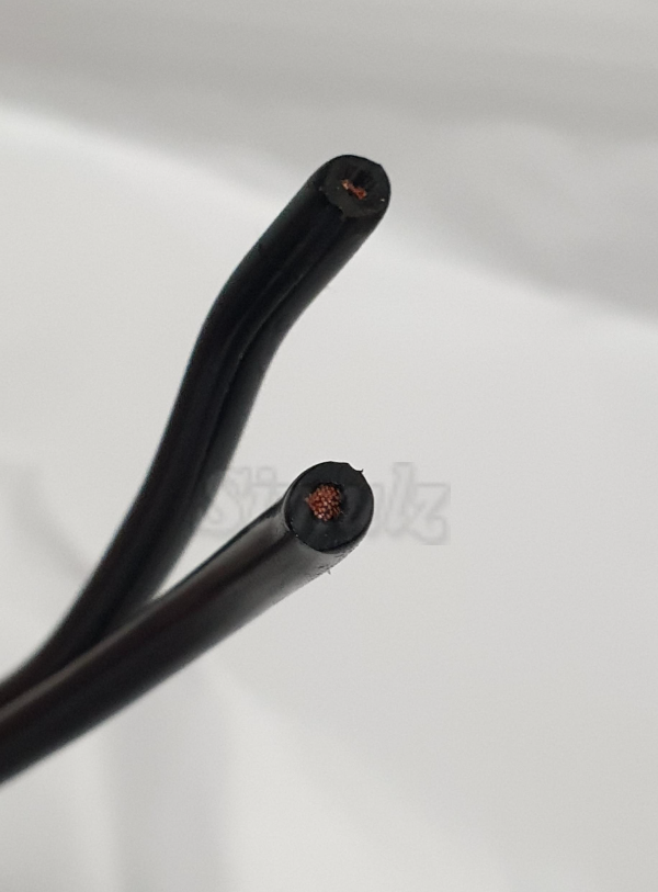 천 원 더 주고 두 배 긴 전선을 구입하는 게 이득입니다. 1.5m 정도면 충분하니 반으로 잘랐습니다. 남은 1.5m의 시거 소켓은 보조 소켓으로 활용하면 될 것 같아요. 단면을 보니 다행히 뻥제품은 아닙니다. 피복이 두꺼울수록 허용전류가 커집니다.