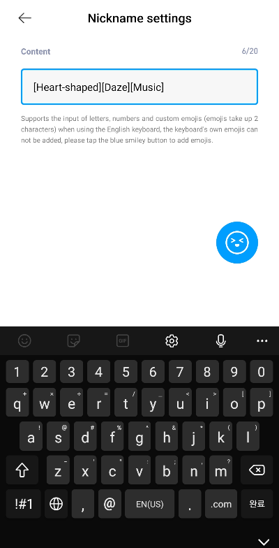 숫자, 대문자, 내장 이모티콘만 가능합니다. 칫솔의 메모리 용량 한계 때문입니다.
