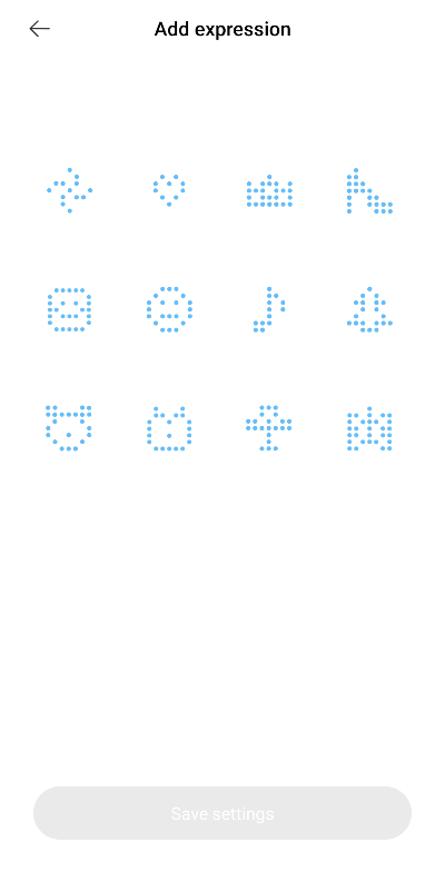 Display 항목을 누르고 Nickname settings 항목을 선택하면 칫솔의 LED 디스플레이에 영문자와 기호를 표시할 수 있습니다.