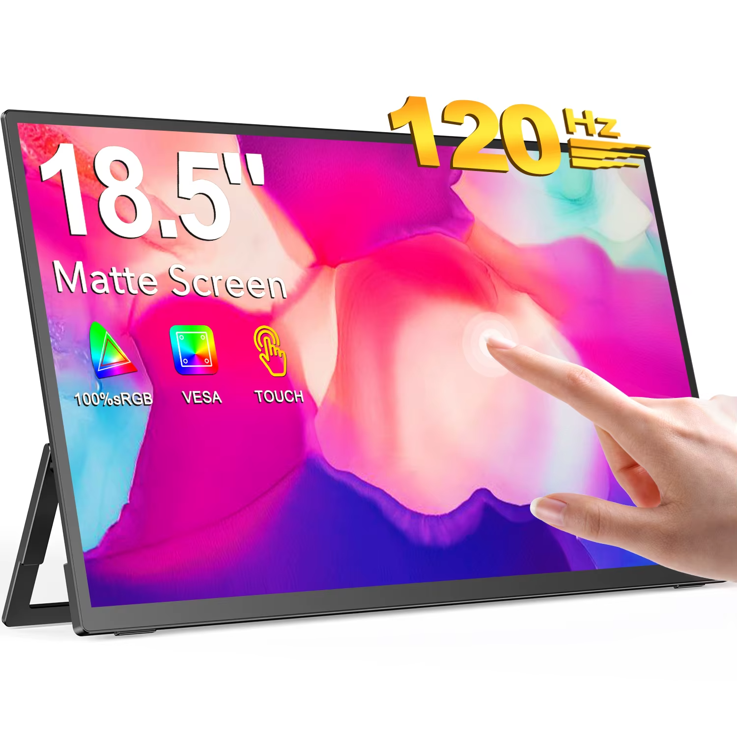 CDisplay 휴대용 모니터 터치 스크린, 노트북 PC Xbox용 외부 게이밍 디스플레이, 180 ° 조절 가능 스탠드 및 VESA, 18.5 인치, 120Hz