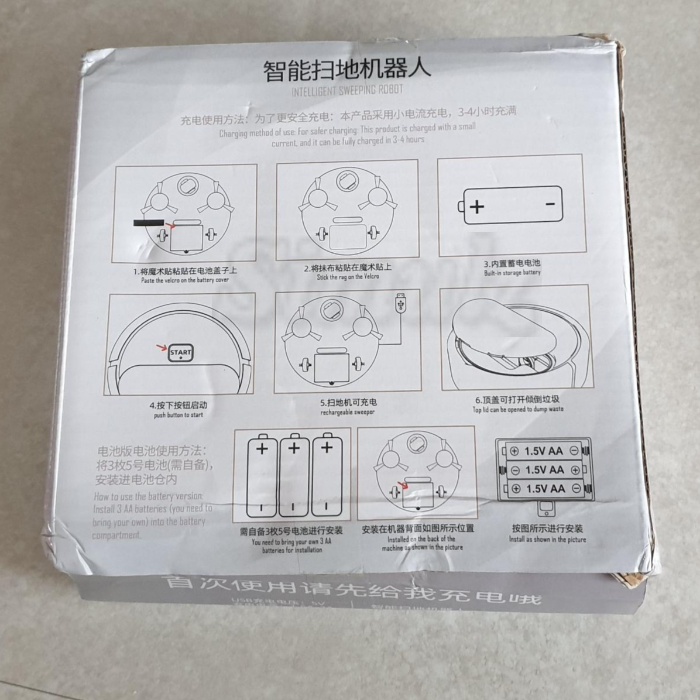 동봉된 벨크로 테이프를 배터리 커버에 붙입니다. 헝겊을 붙이면 바닥 청소도 해주는 로봇 청소기처럼 보입니다.