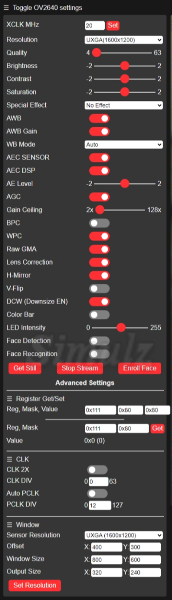 Start Stream 버튼을 누르면 실시간으로 영상을 볼 수 있습니다.