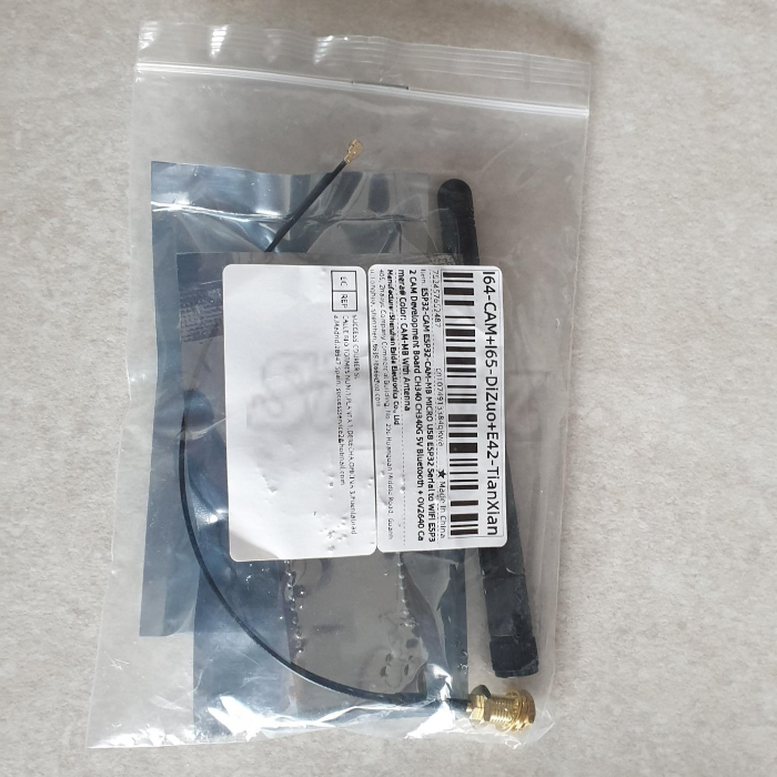 지퍼 봉지 안에 ESP32 모듈, USB 모듈, 카메라 모듈, 무선 안테나가 들어있습니다.