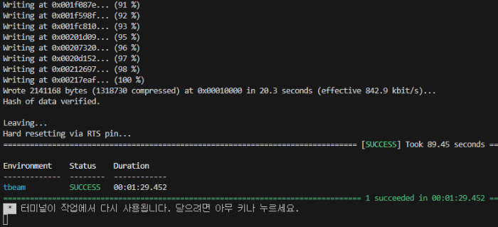 빌드 또는 업로드를 실행하면 아래처럼 작업이 완료 됩니다.