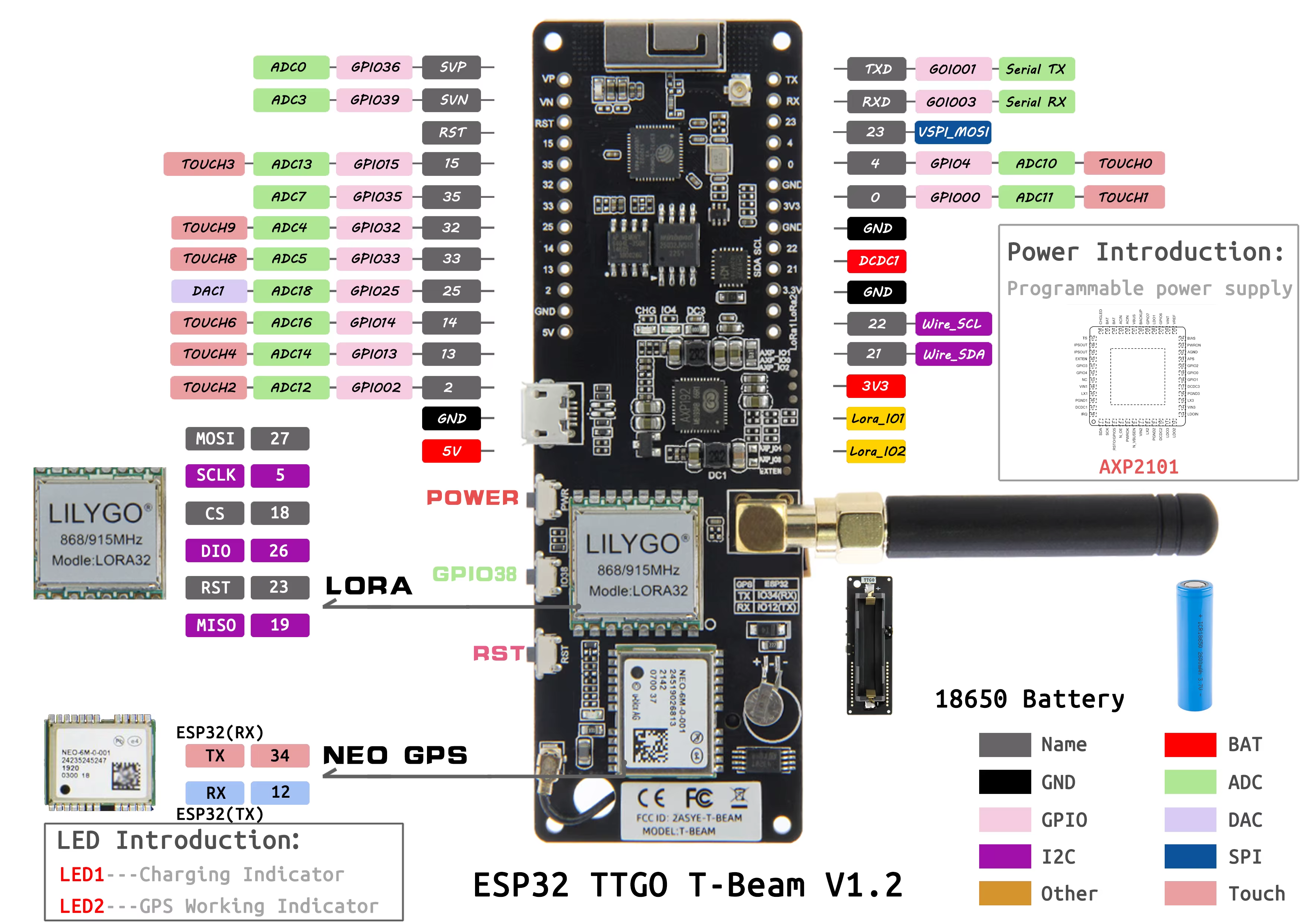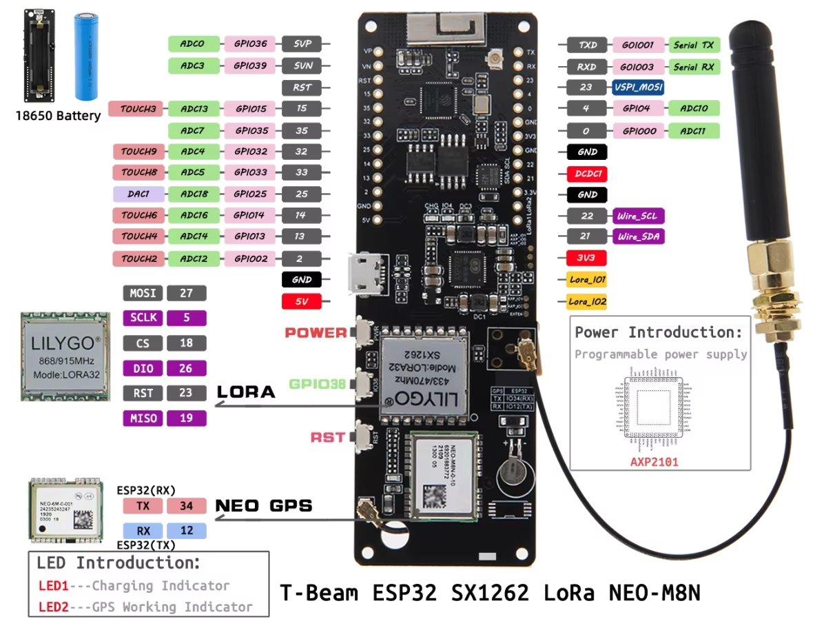 LILYGO® TTGO T-Beam ESP32 LoRa Development Board 433MHz 868MHz 915MHz 923MHz SX1278 SX1262 SX1276 GPS Module NEO-6M GNSS NEO-M8