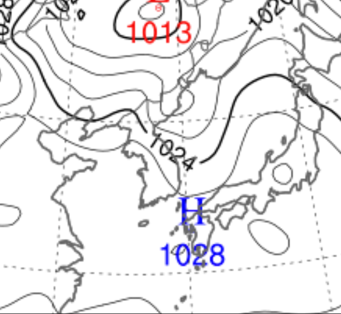 표준 1기압은 1013.25hPa입니다. 해면 기압은 실시간으로 변하기 때문에 실제 기압으로 계산해야 합니다.