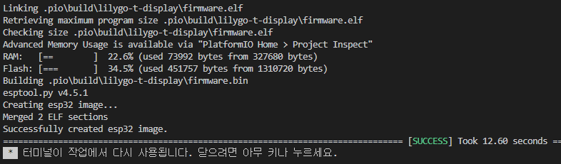 PlatformIO 상태표시줄 도구 모음에서 ✔️ 아이콘을 누르면 컴파일이 됩니다.