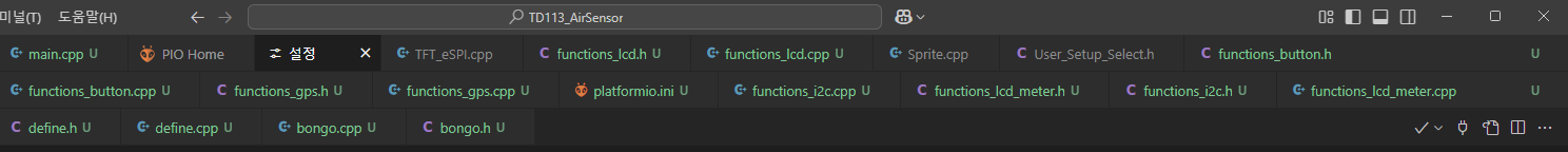 Arduino IDE에서는 .ino 파일을 여러 개 만들어서 코드를 분할할 수 있지만, PlatformIO IDE에는 병합 기능이 없습니다. 그래서 .h, .cpp 파일을 각각 만들고 include 해야 합니다. C++에서는 헤더 파일에 확장자(.h)를 붙이지 않습니다.