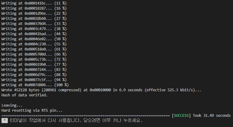 전송 속도 기본값은 460800이므로 921600을 적용하려면 아래처럼 지정합니다.