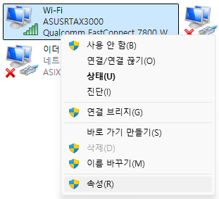 시작 메뉴에서 네트워크 연결 보기를 검색해서 실행합니다.