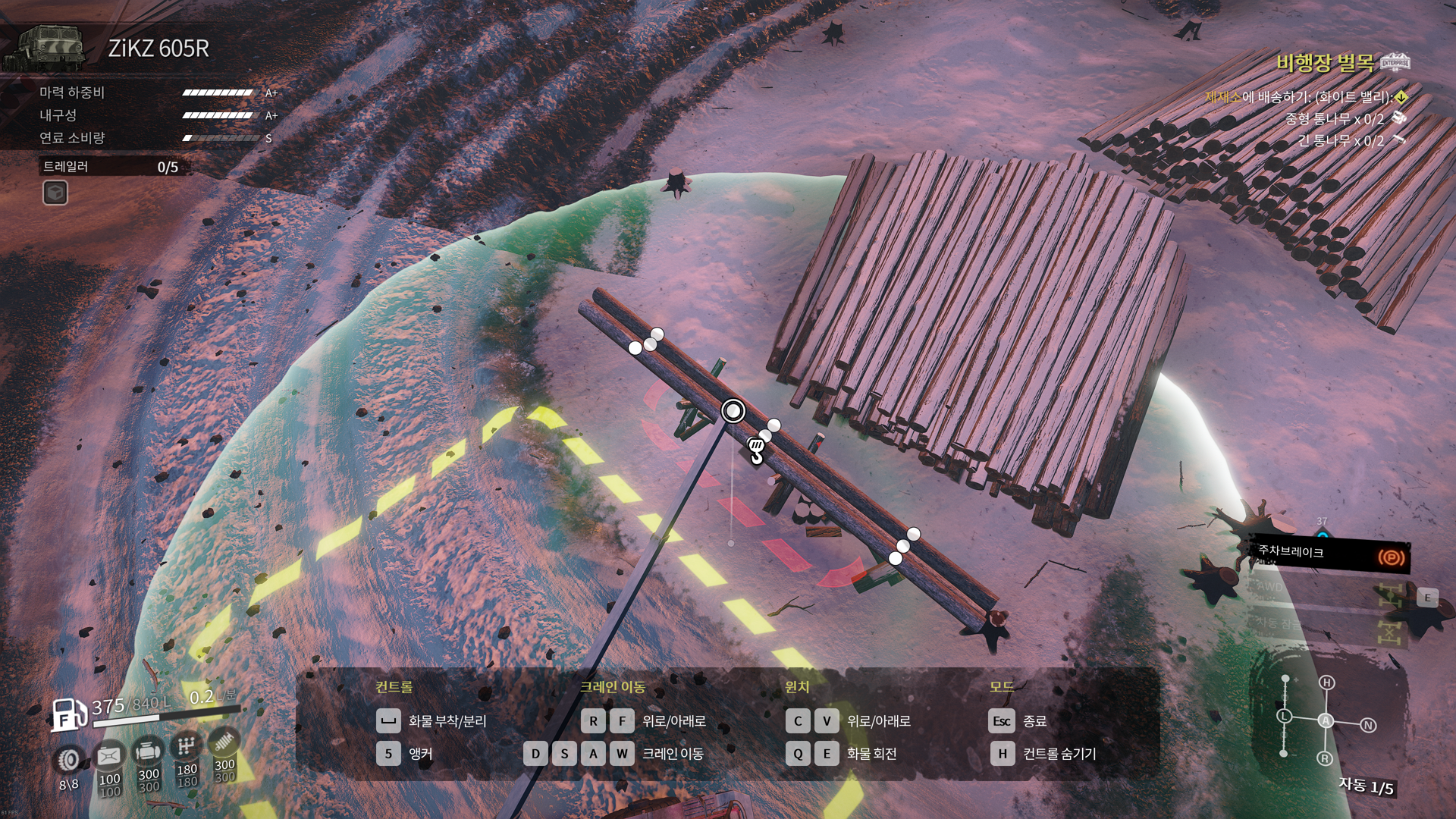 크레인을 활성화하면 통나무에 견인 위치가 표시된다.