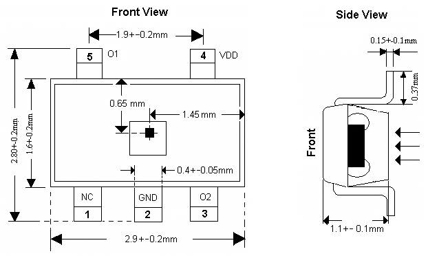 기판 표면 실장 형태인 SMD 타입의 센서는 측정 위치가 센서 표면 중앙이며 측정 방향이 센서 바닥면입니다. 정확하게는 센서 내부가 측정점입니다. 바닥면이 측정면인 센서는, 윗면에 N극을 갖다 대면 S극으로 인식합니다.