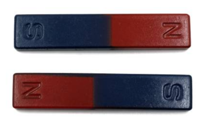 교육용 막대자석의 경우, 지구의 북쪽은 S극이기 때문에 북반구에 있는 지역에서는 자석의 N극이 민감하게 작용하므로 N극을 작게 만들어서 수평을 유지할 수 있도록 만듭니다.