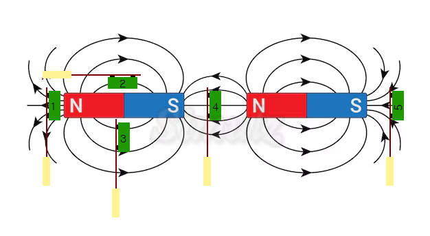 1. 제일 정상적인 측정 방법입니다. 자기력선이 센서에 수직으로 통과합니다. 극 표면에 근접할수록 수직으로 통과하는 자기력선이 많으므로 높은 값을 측정할 수 있습니다. 계측기에서는 N극으로 측정됩니다.