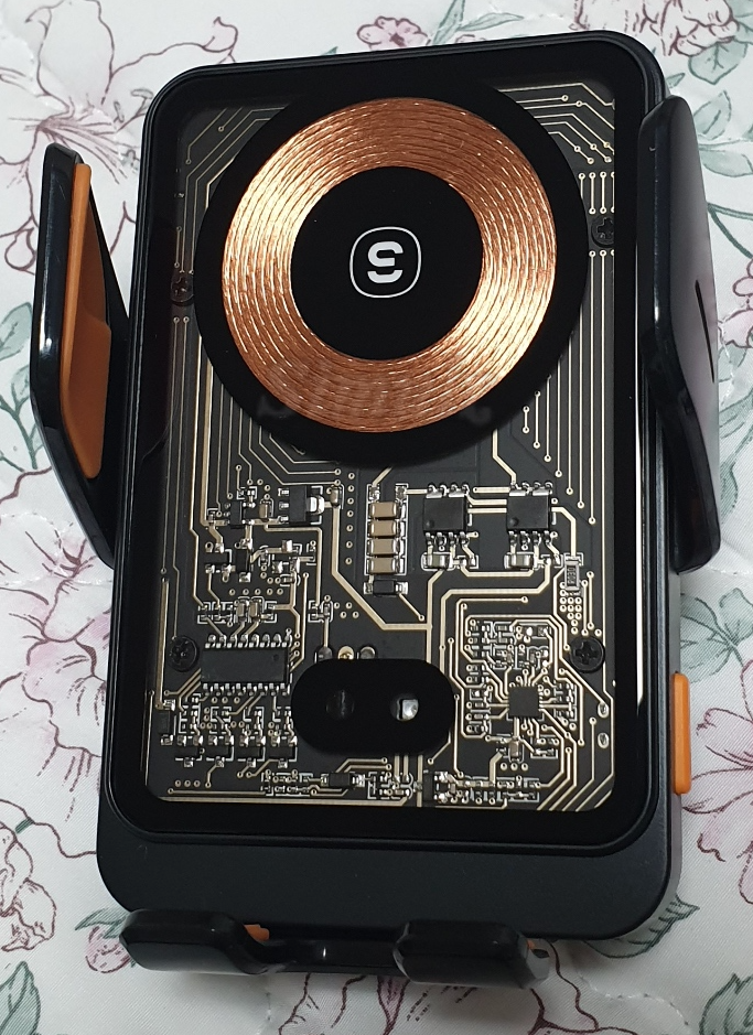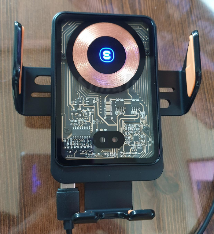 자동차에서 Qi 충전이 가능한 자동 거치대입니다.