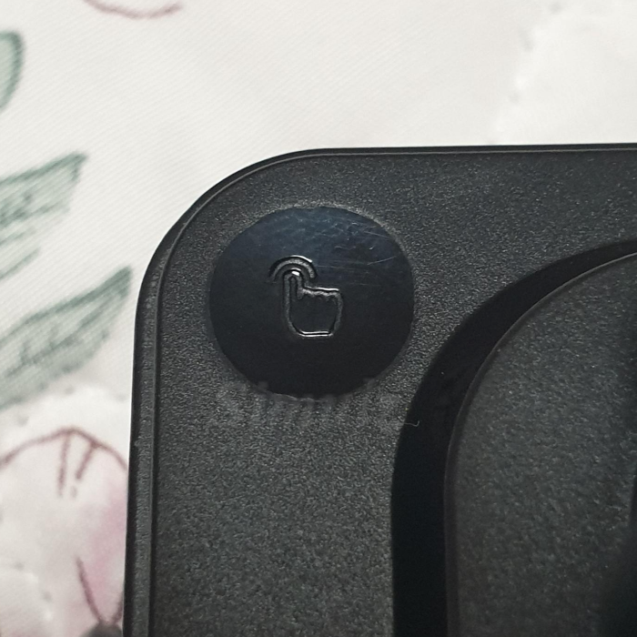 뒷면에는 터치식 해제(release) 버튼이 있습니다. 기계식 스위치는 당기면 꺾이거나 빠질 수 있어서 터치식으로 설계했습니다.