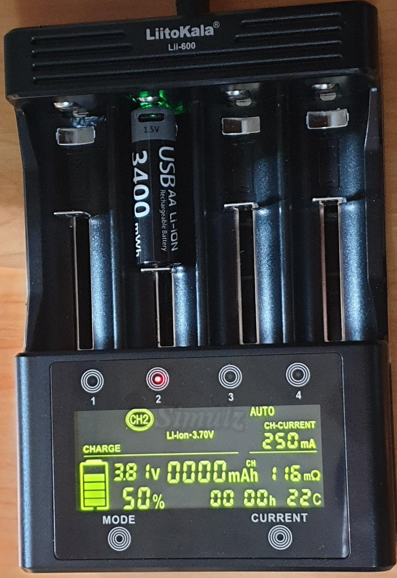 LiitoKala 충전기에 꽂았더니 Li-ion으로 인식합니다. 충전 중일 때 배터리에서 초록불이 점멸합니다. 충전이 되고 있다는 것입니다. 배터리의 내부 저항은 116mΩ입니다.