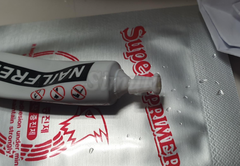 - 기본 포함된 접착제의 뚜껑을 꺾어서 개봉합니다.