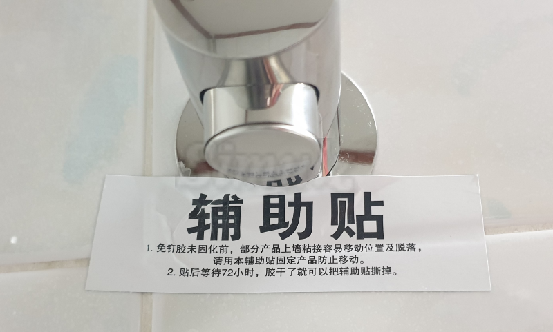 - 거치봉 원판에 三 처럼 발라주고 타일에 붙입니다.