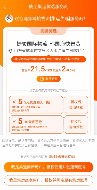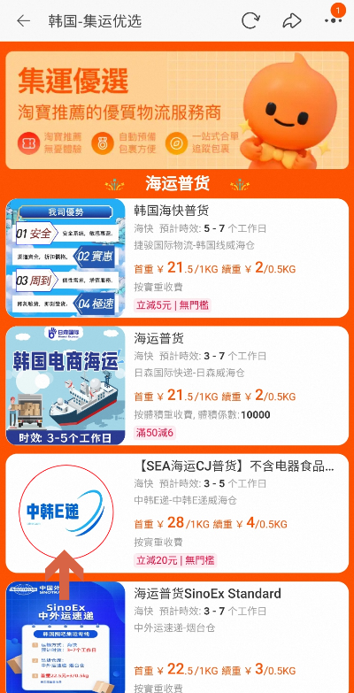 CJ는 ¥20원 쿠폰을 줍니다. 대한통운은 5원 쿠폰이 2개 뿐이지만 KG당 요금이 저렴합니다. 또 CJ 보다 배송이 느립니다.
