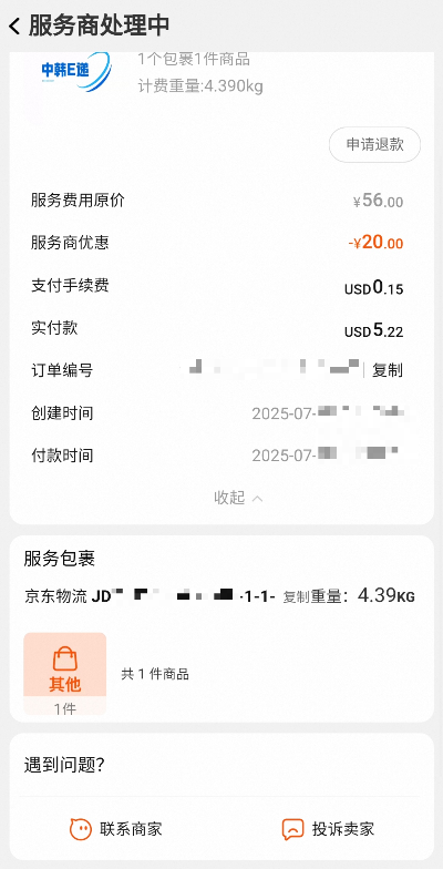 ⬆️결제 수수료 0.15 달러가 붙어서 최종 5.22 달러가 청구됩니다. 이 수수료는 국내 카드결제 수수료가 아니라 중한이체 수수료입니다. 중국에서는 ¥원화로 받아야 하는데 달러로 받았으니 환전 수수료를 추가로 받지요~