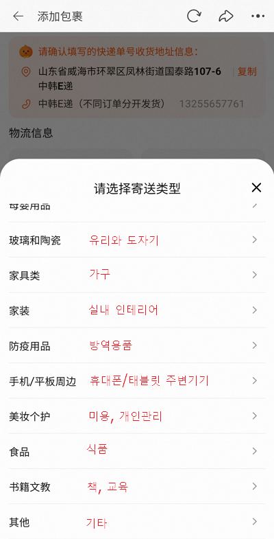 제3자 물류배송대행 서비스 연동은 앱에서만 지원되기 때문에 스마트폰 앱을 설치해야 합니다. 단, 앱에서는 중문만 가능합니다.🤬