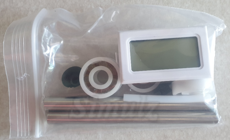 기본 구성품에는 온습도계와 베어링 5개, 추가 고무 마개 2종, 호스, 샤프트 2개입니다.