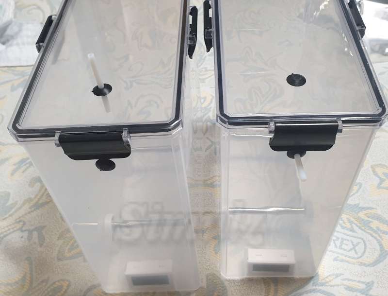 식품 보관 용기에 직접 구멍을 뚫어서 사용하기도 하지만 베어링과 온습도계가 포함된 완제품을 사용하면 매우 편리합니다.