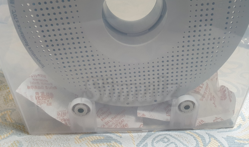 밀폐 용기 내부에는 거치대가 있어서 부품을 끼우기만 하면 됩니다. 베어링은 플라스틱 저질이라 흉내만 내고 있습니다. 온습도계를 고정할 수 있는 홈도 있어요~