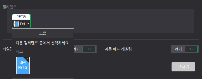 출력하기에서 필라멘트를 또 선택하는 이유