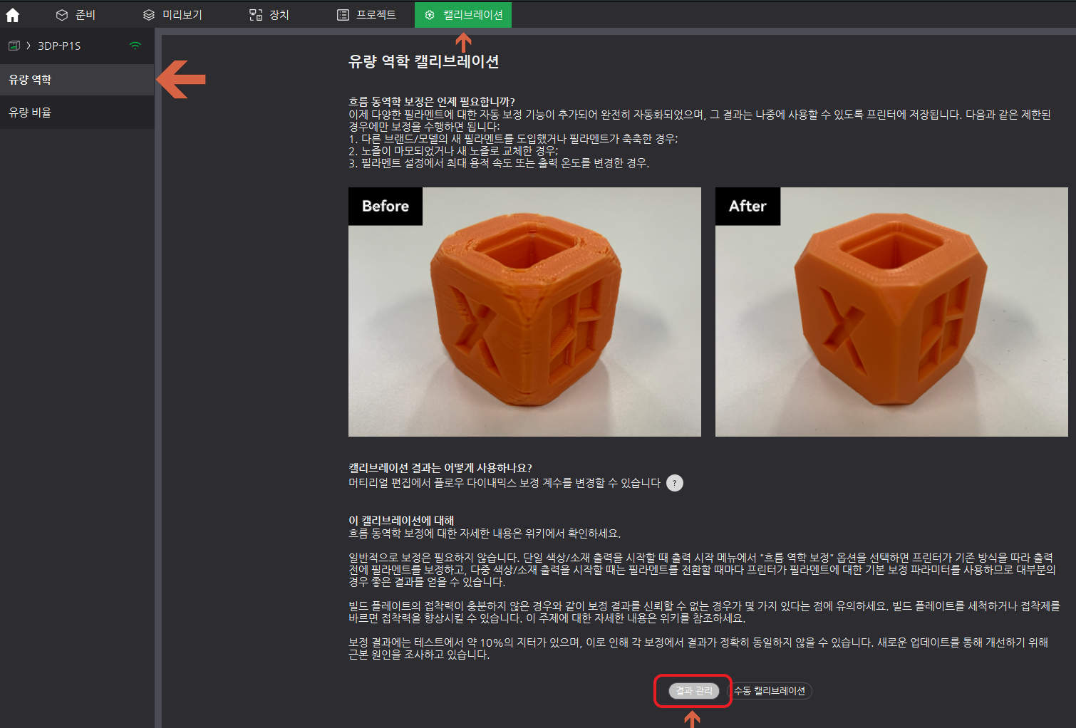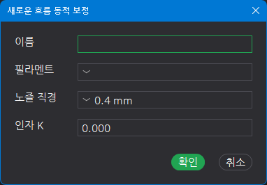 프로필에 등록된 필라멘트라도 품질 개선을 위해 K 상수을 조절할 필요가 있습니다.