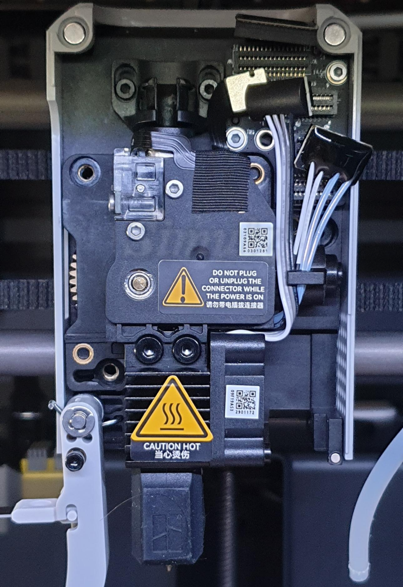 커넥터 세개를 빼고 볼트 3개를 풀면 압출기 조립품이 빠집니다.