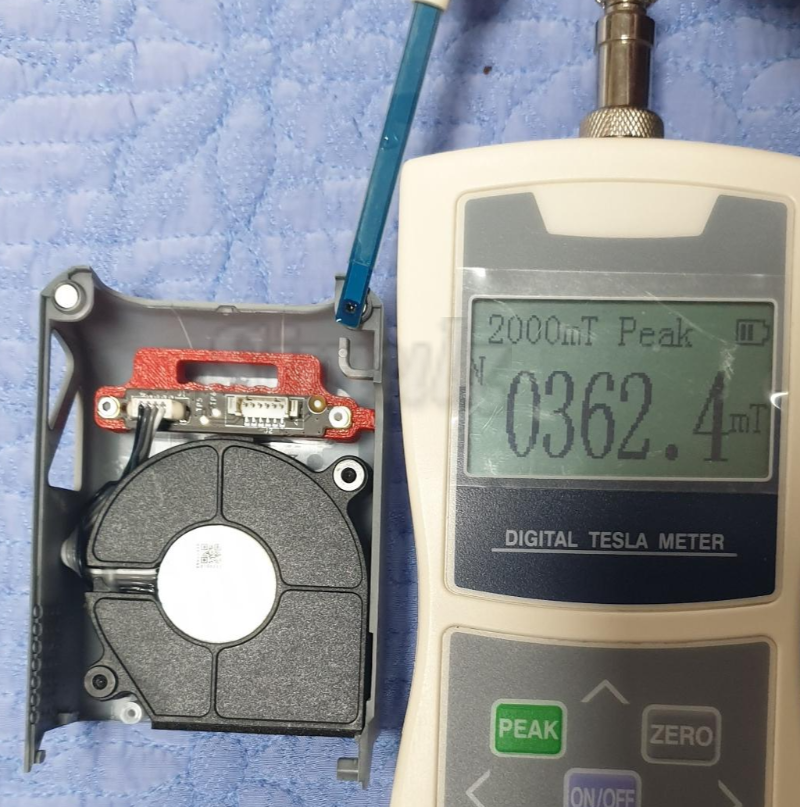 자석 2개 모두 3600 가우스가 넘는 자속밀도가 측정되었습니다.