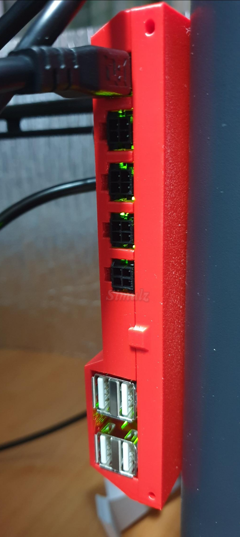 4Pin 커넥터를 프린터 뒷면과 브랜치 IN 포트에 연결하면 LED가 켜집니다.