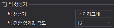 이번엔 벽 전환 임계값 각도를 12 이상으로 설정합니다.