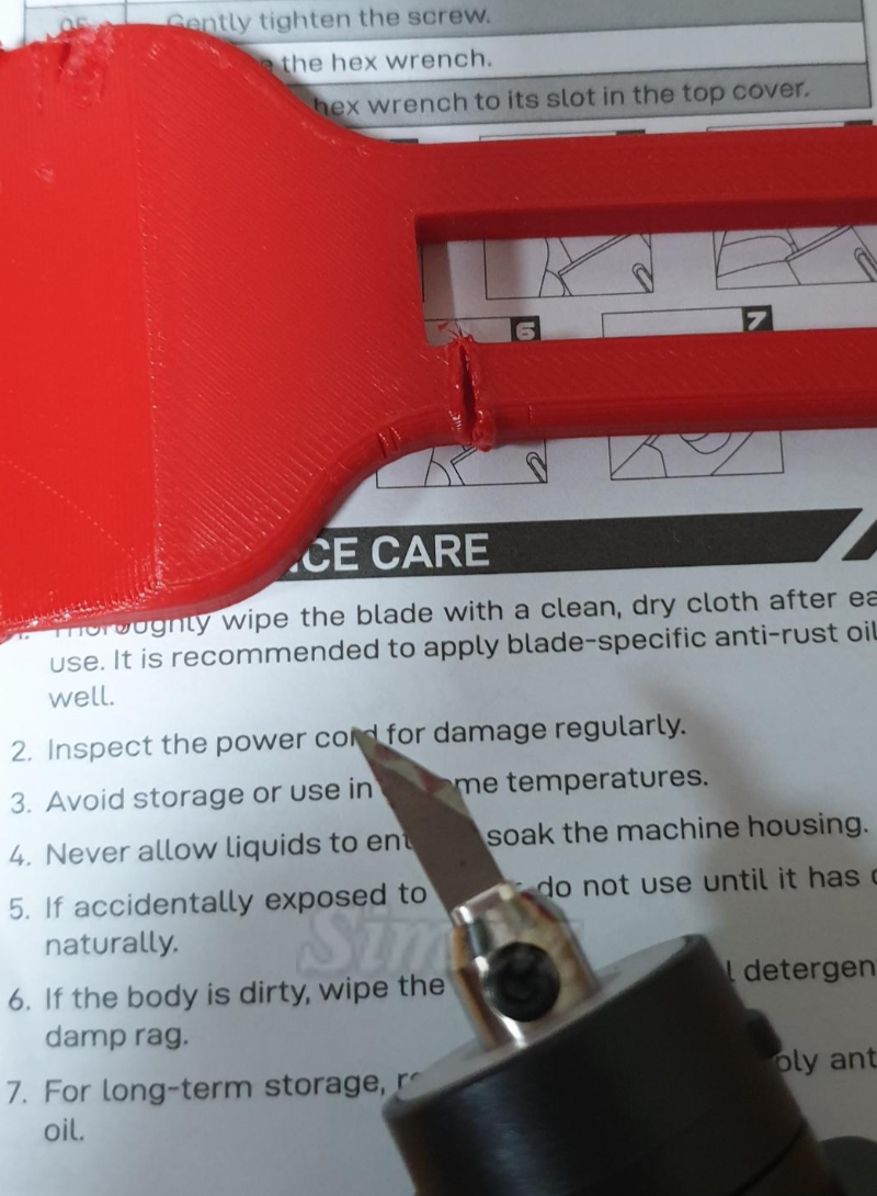 커터 보호캡은 잠금 스위치가 있으며 돌려서 열 수 있습니다. 위에는 납작한 덮개가 있는데, 그 안에 엘런키가 들어있으며, 여분의 칼날을 보관할 수 있습니다.