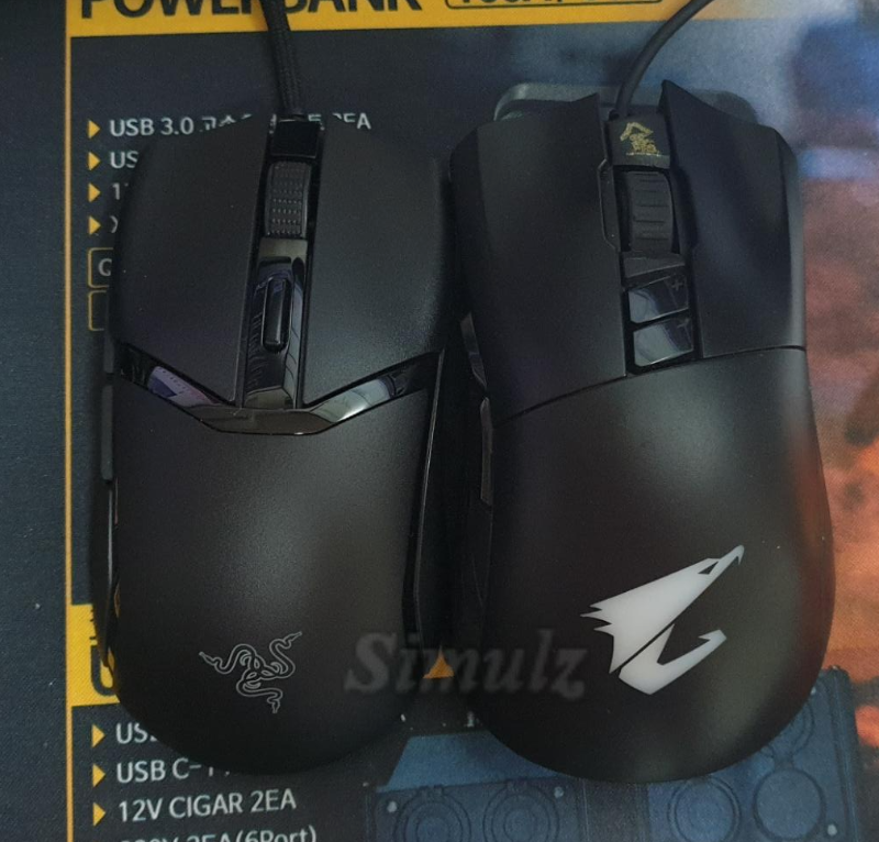 AORUS M3는 손바닥에 닿을 정도로 충분한 크기인데, RAZER COBRA는 보다 작은 크기로 손바닥이 닿지 않아 매우 허전하다.