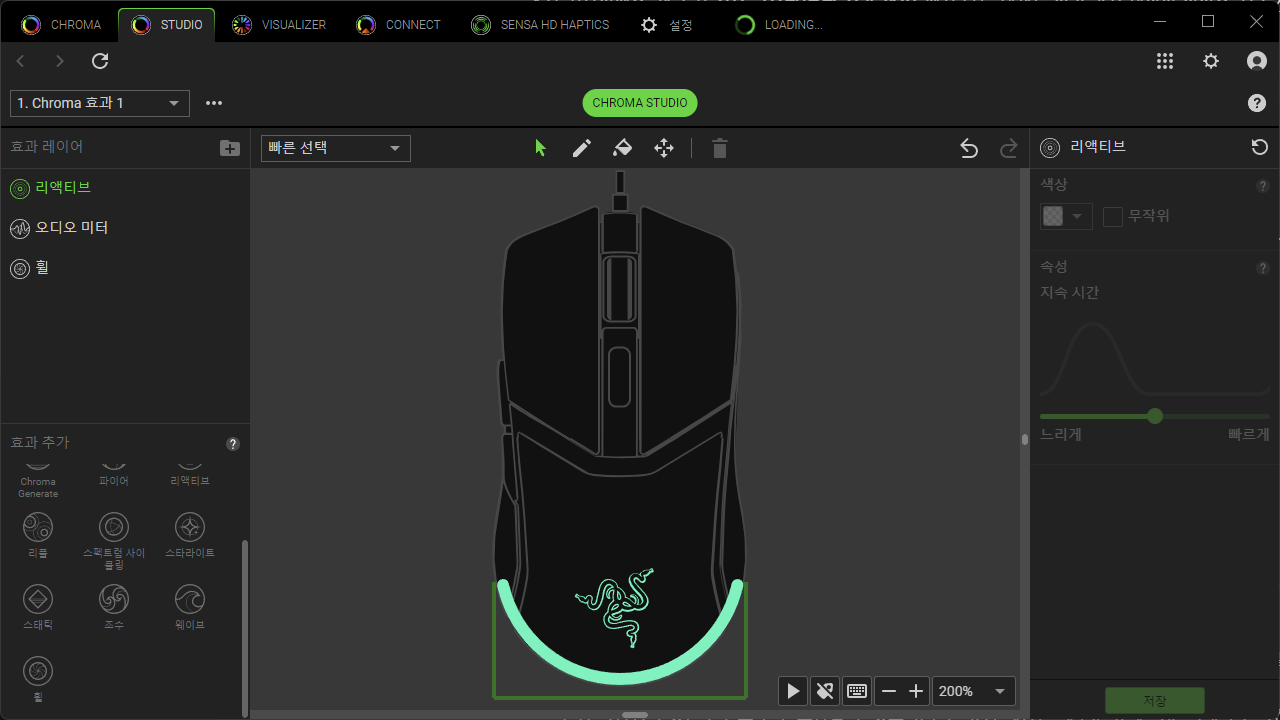 크로마 스튜디오에서는 각종 효과를 설정할 수 있다. STUDIO 탭에서 설정한다.