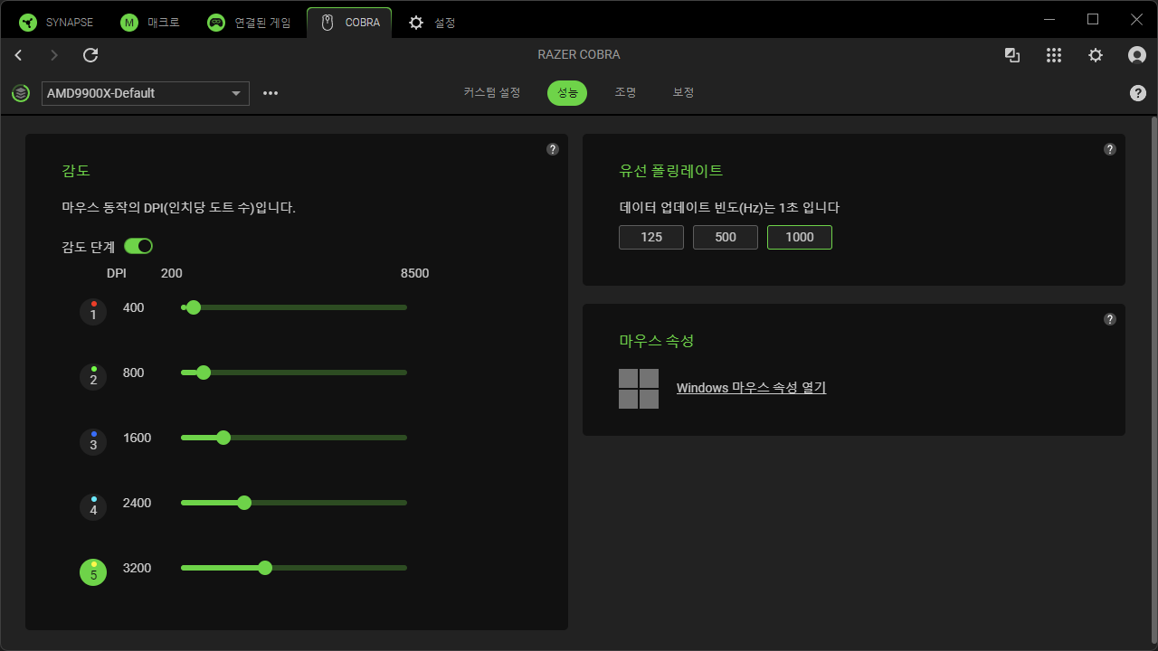 M3에서 사용하던 DPI 값으로 맞춰주었다. 그래도 센서 성능 때문인지 감도 차이가 조금 있다.