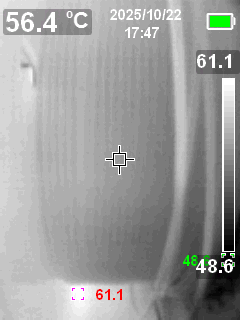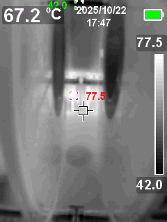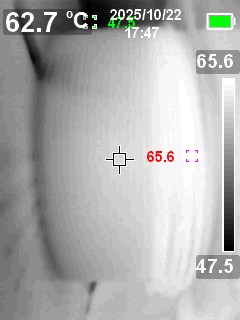 1: 반 이상 쓴 왼쪽 필라멘트는 공급 중 65도까지 가열되었습니다. 식은 부분은 62.7도입니다.