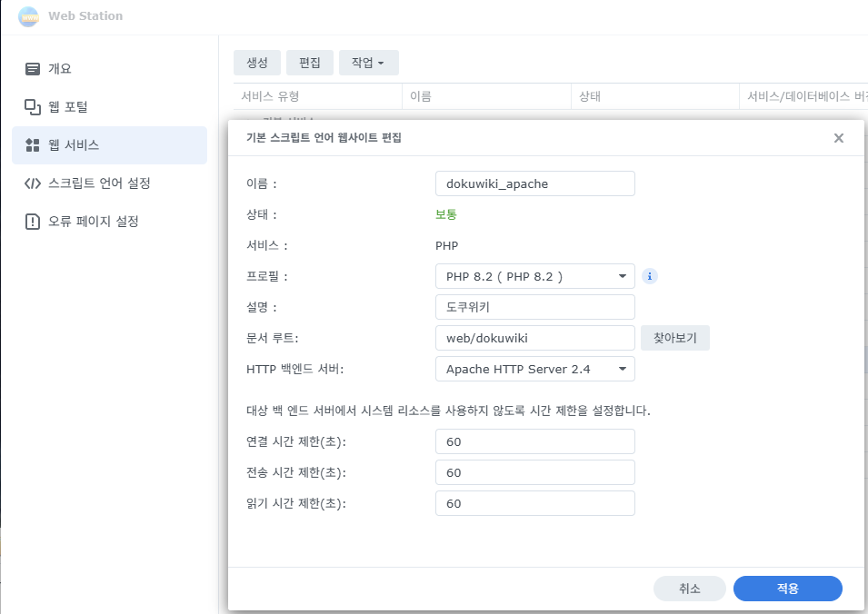 Synology NAS에 DokuWiki 설치하기