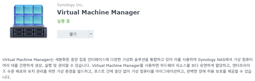 시놀로지 NAS가 있다면 가상 머신 매니저(VMM)에 설치하여 사용하면 됩니다.